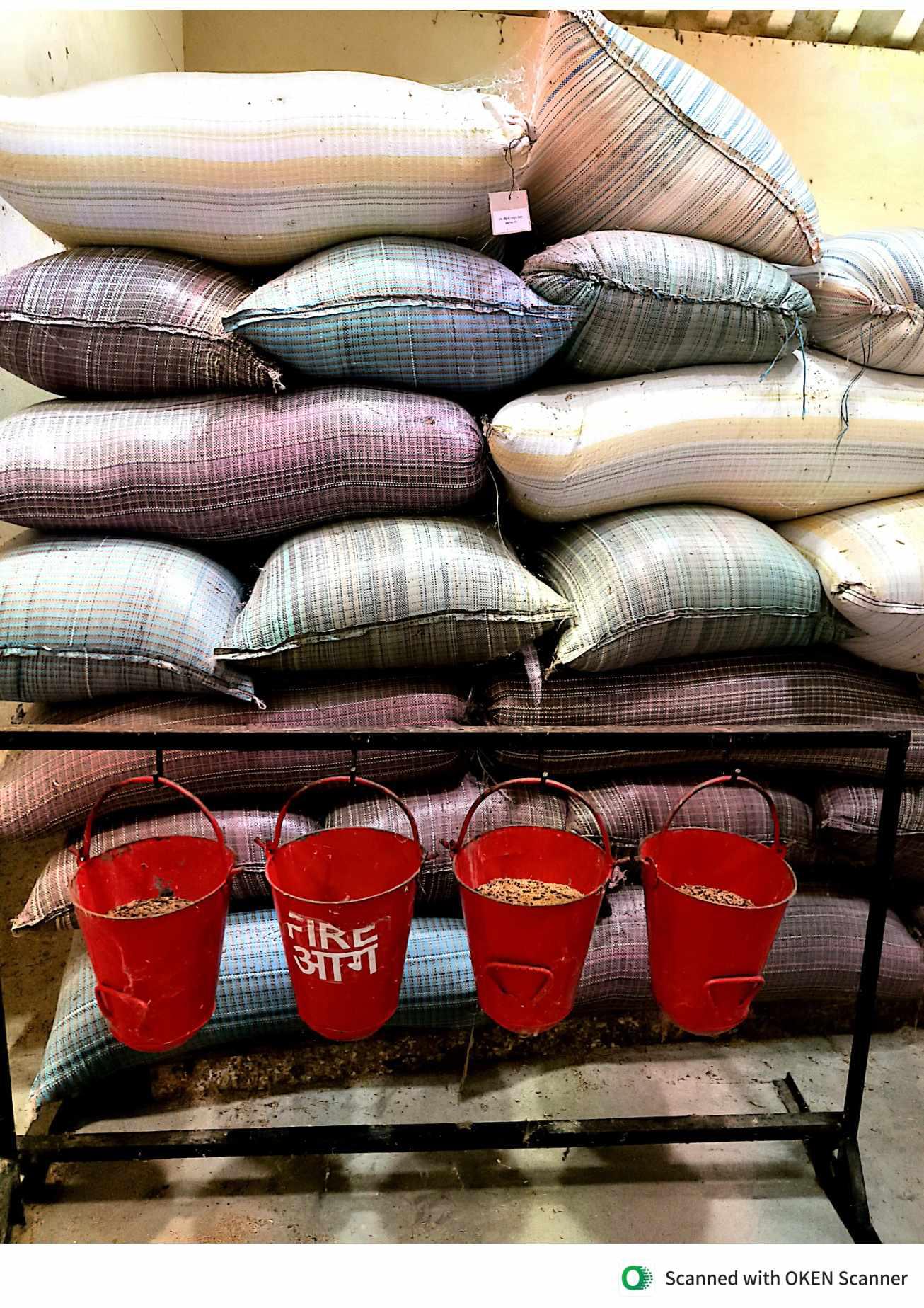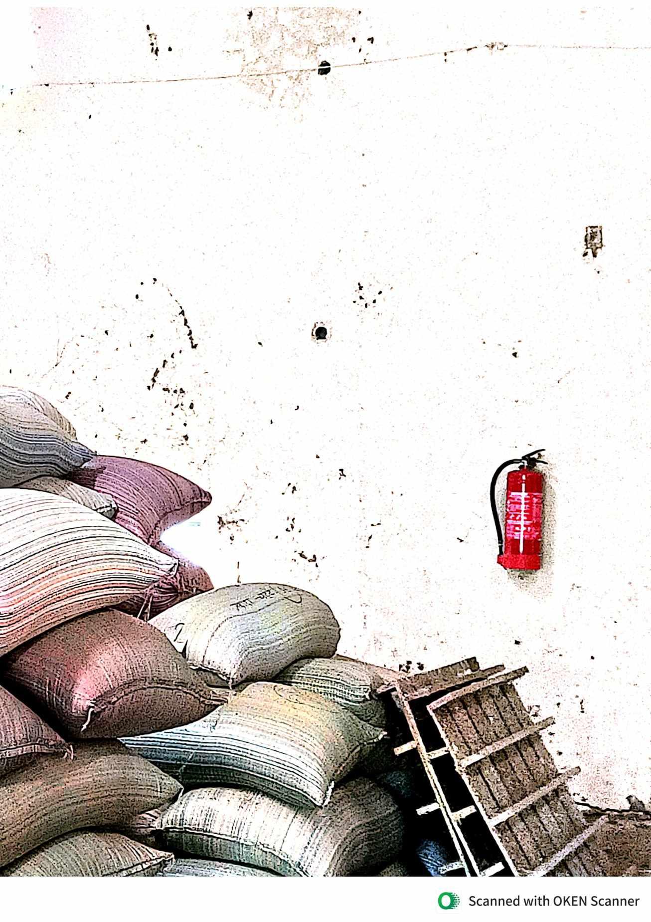 Fire extinguisher arrangement to protect farm produce in the warehouse from fire